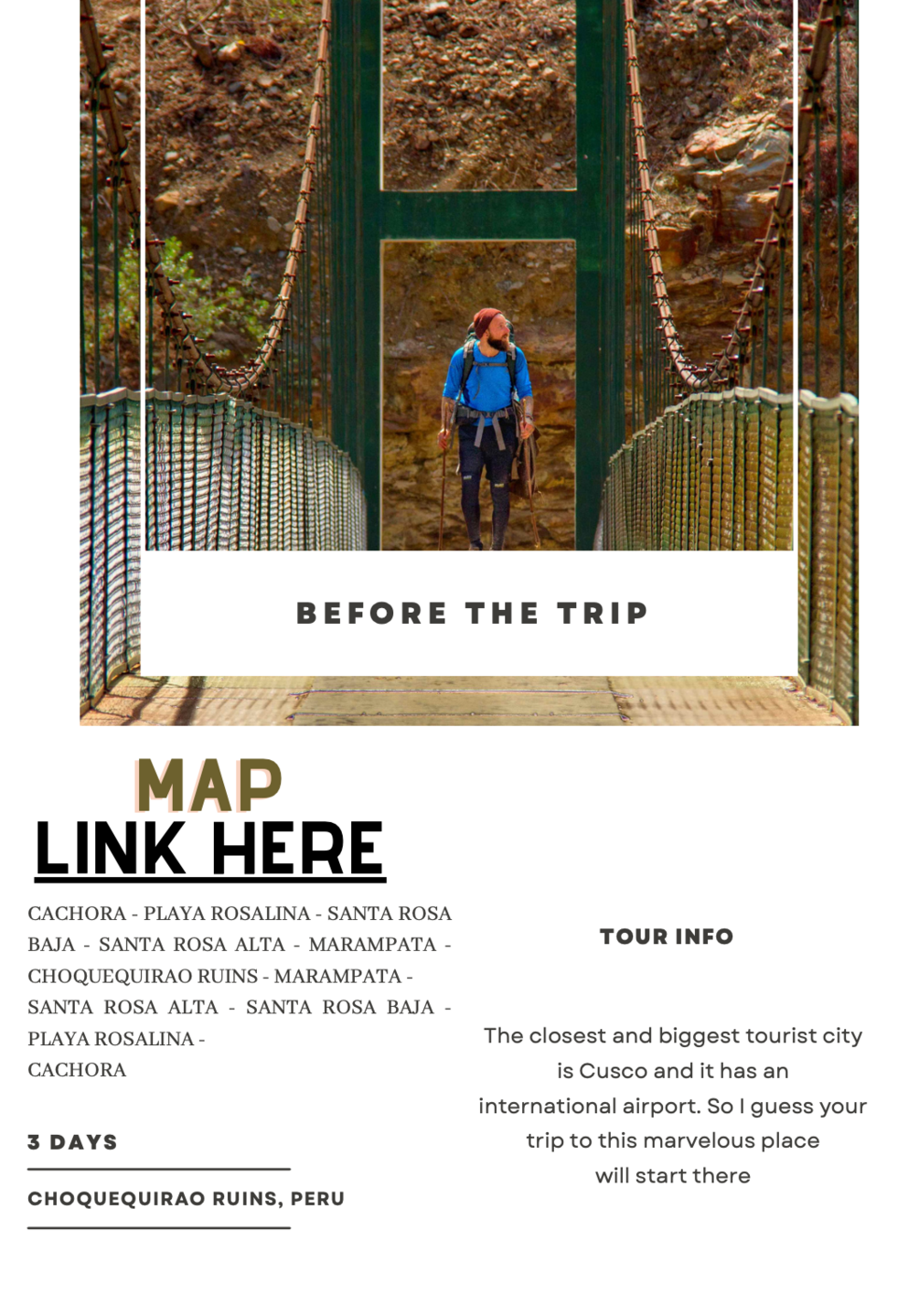 This guide not only outlines the trekking itinerary but also provides essential information on reaching the starting point, packing recommendations, accommodation options, and suggested camping sites along the route. Whether you choose the condensed or traditional plan, this guide ensures a comprehensive and enjoyable experience as you embark on the journey to discover the hidden wonders of Choquequirao.