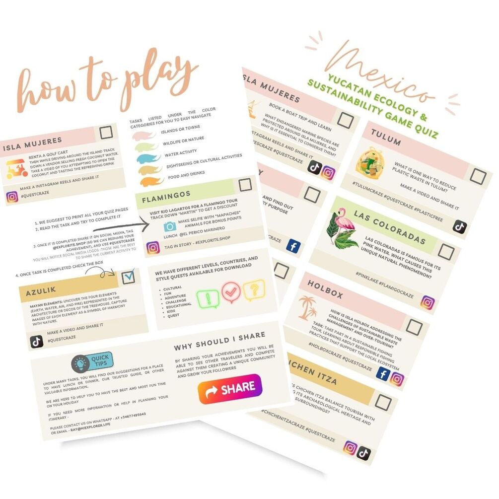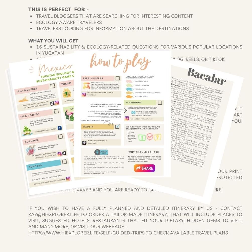 11 pages of PDF printable document fun and active travel itinerary in Mexico, Eco and sustainability trip. No more boring travel plans!