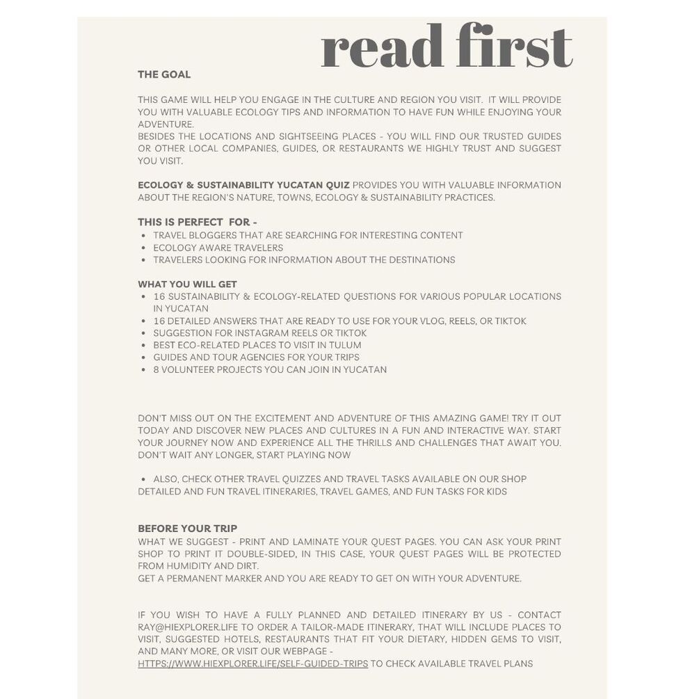 THIS GAME WILL HELP YOU ENGAGE IN THE CULTURE AND REGION YOU VISIT. IT WILL PROVIDE YOU WITH VALUABLE ECOLOGY TIPS AND INFORMATION TO HAVE FUN WHILE ENJOYING YOUR ADVENTURE.